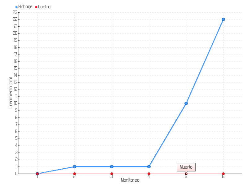 | 2 | 28/04/2023 | 11.00 cm | 1.00 cm | 0.0270 cm/día | 1.00 cm |