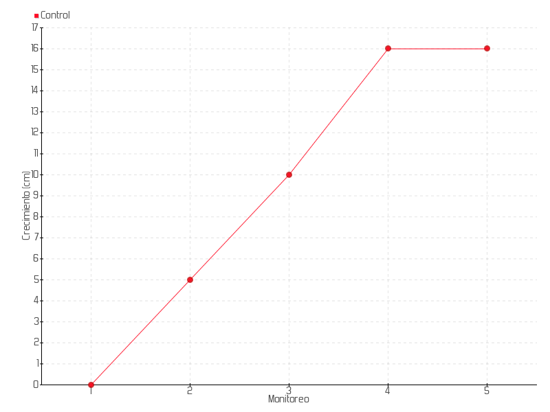 | Monitoreo | Fecha | Altura | Crecimiento | Tasa de crecimiento | Crecimiento total |