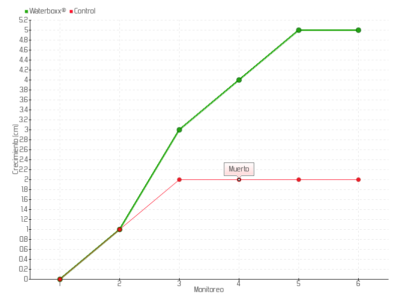 | 5 | 13/05/2015 | 11.00 cm | 1.00 cm | 0.0476 cm/día | 5.00 cm |