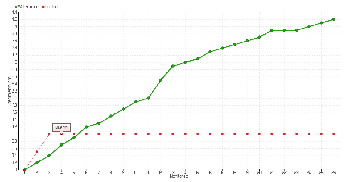 | Monitoreo | Fecha | Altura | Crecimiento | Tasa de crecimiento | Crecimiento total |