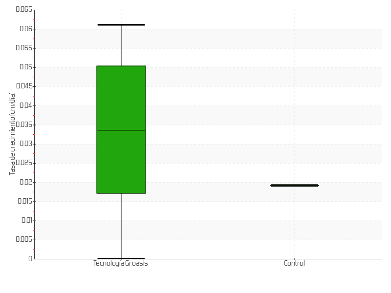 | 7 | 09/07/2015 | 31.00 cm | 2.50 cm | 0.0694 cm/día | 5.50 cm |