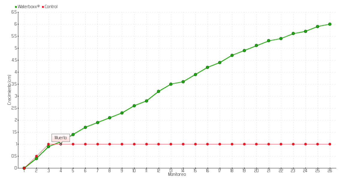 | Monitoreo | Fecha | Altura | Crecimiento | Tasa de crecimiento | Crecimiento total |
