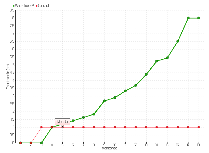 | Monitoreo | Fecha | Altura | Crecimiento | Tasa de crecimiento | Crecimiento total |