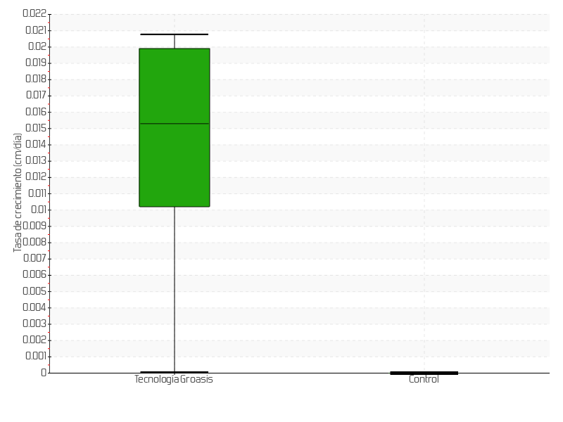 | 6 | 03/06/2015 | 15.50 cm | 0.50 cm | 0.0192 cm/día | 2.50 cm |