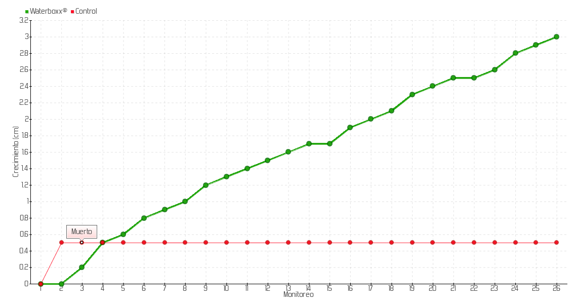 | Monitoreo | Fecha | Altura | Crecimiento | Tasa de crecimiento | Crecimiento total |