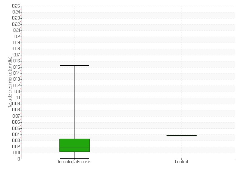 | 6 | 03/06/2015 | 22.00 cm | 1.00 cm | 0.0385 cm/día | 9.00 cm |