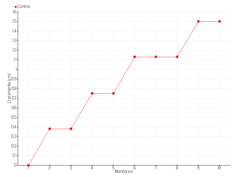 | Monitoreo | Fecha | Altura | Crecimiento | Tasa de crecimiento | Crecimiento total |