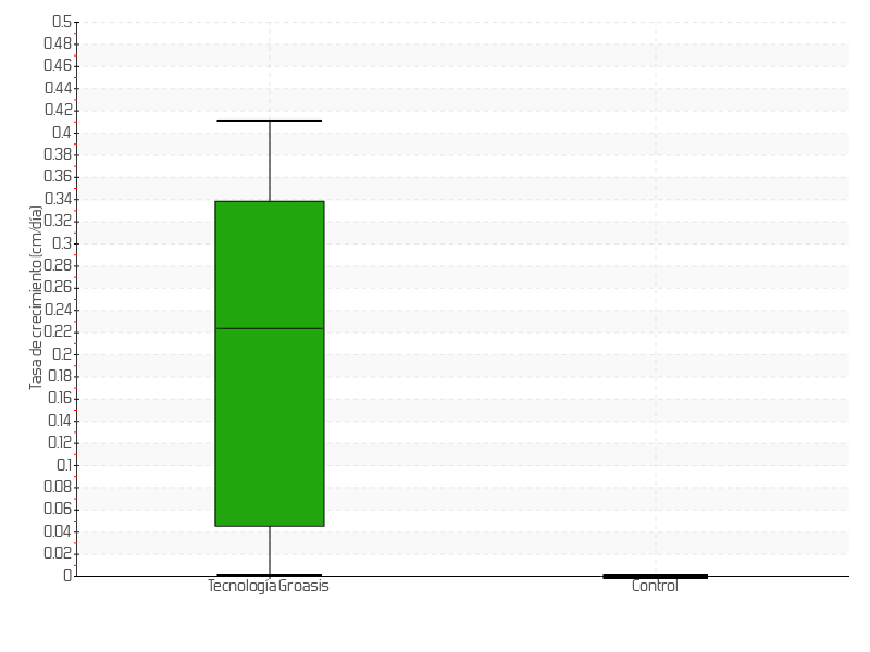 | 4 | 08/04/2015 | 38.00 cm | 28.00 cm | 1.2727 cm/día | 28.00 cm |