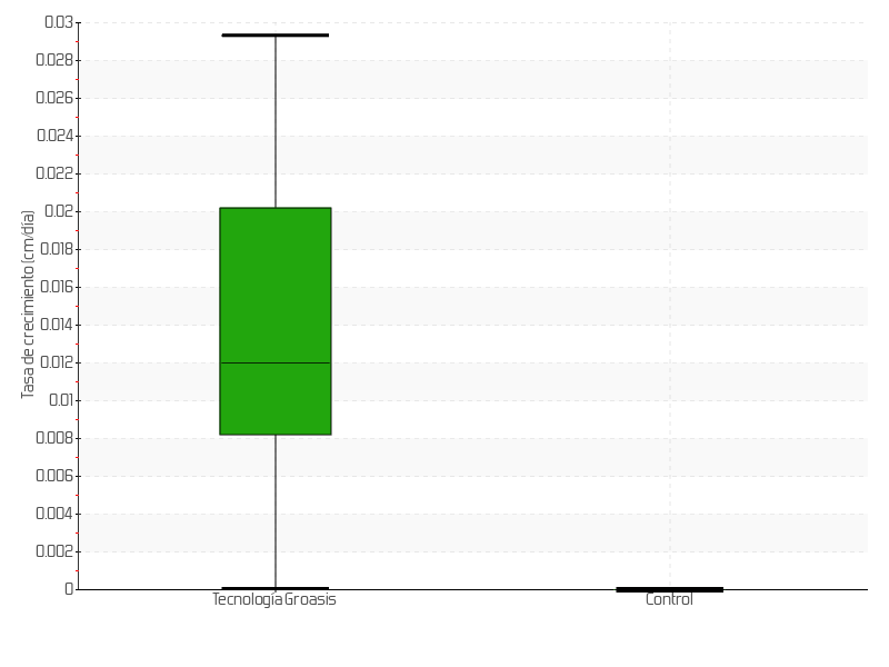 | 8 | 15/09/2015 | 13.00 cm | 1.00 cm | 0.0294 cm/día | 4.00 cm |