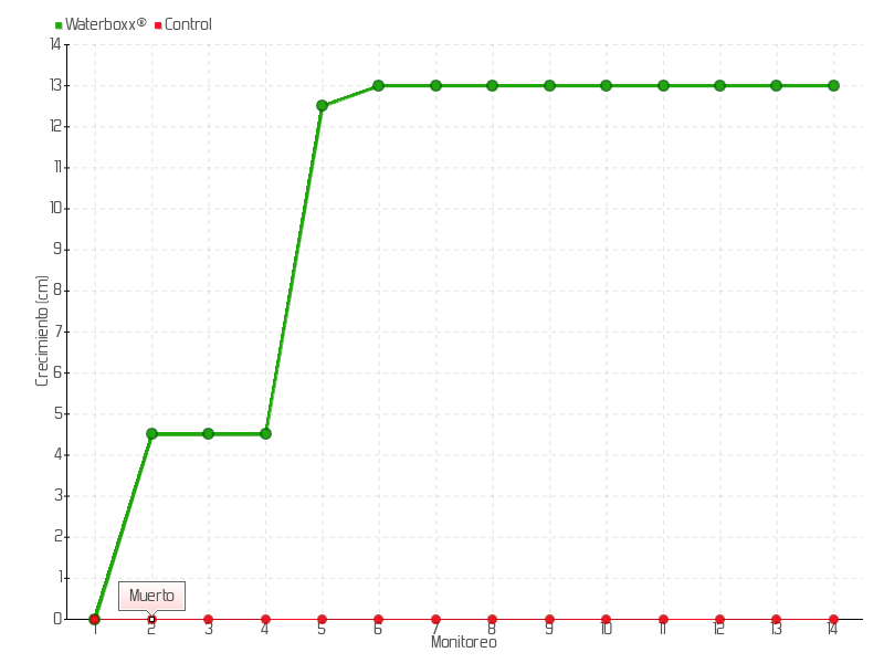 | 14 | 11/07/2017 | 30.00 cm | 0.00 cm | 0.0000 cm/día | 13.00 cm |