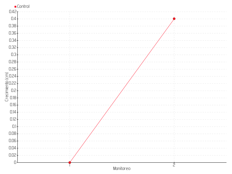 | Monitoreo | Fecha | Altura | Crecimiento | Tasa de crecimiento | Crecimiento total |