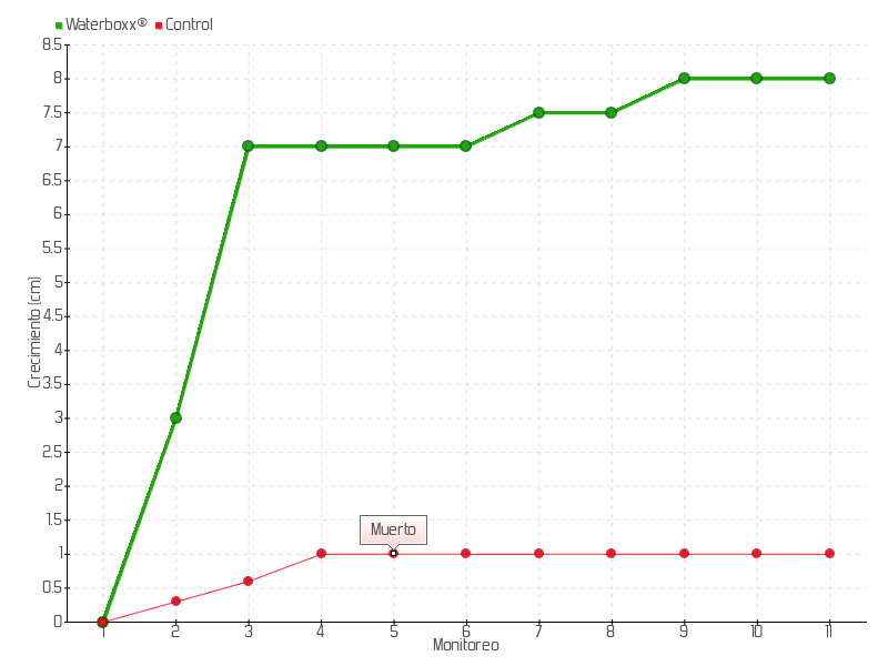 | Monitoreo | Fecha | Altura | Crecimiento | Tasa de crecimiento | Crecimiento total |