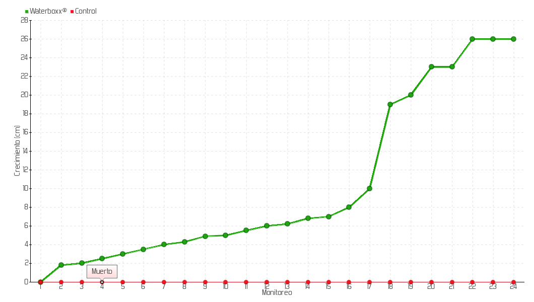| 2 | 08/05/2015 | 21.80 cm | 1.80 cm | 0.0643 cm/día | 1.80 cm |