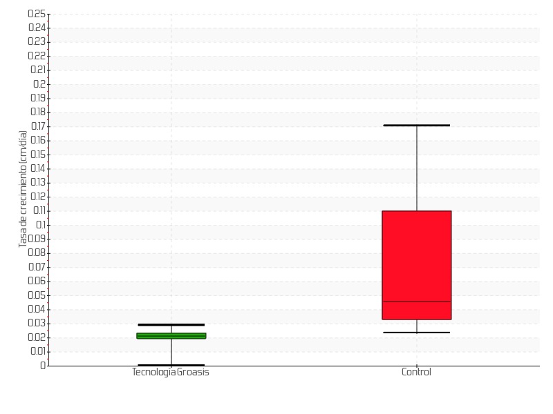 | 4 | 10/11/2015 | 13.50 cm | 1.50 cm | 0.0268 cm/día | 3.50 cm |