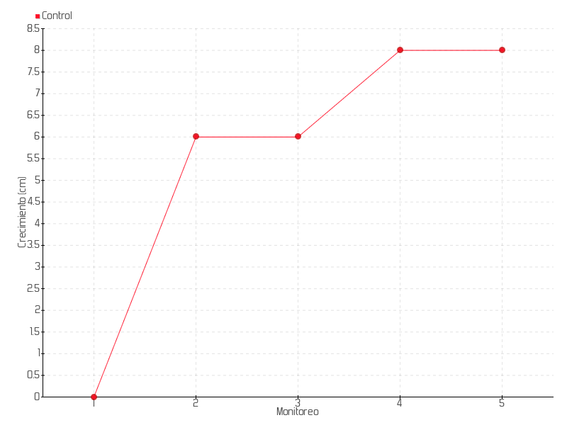 | Monitoreo | Fecha | Altura | Crecimiento | Tasa de crecimiento | Crecimiento total |