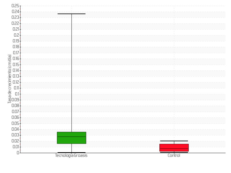 | 6 | 26/01/2017 | 34.50 cm | 1.80 cm | 0.0273 cm/día | 12.50 cm |