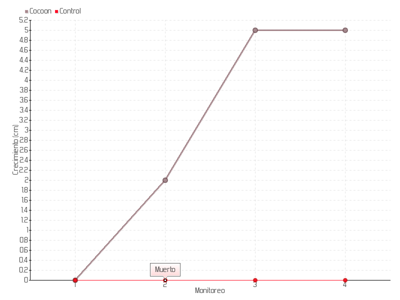 | Monitoreo | Fecha | Altura | Crecimiento | Tasa de crecimiento | Crecimiento total |