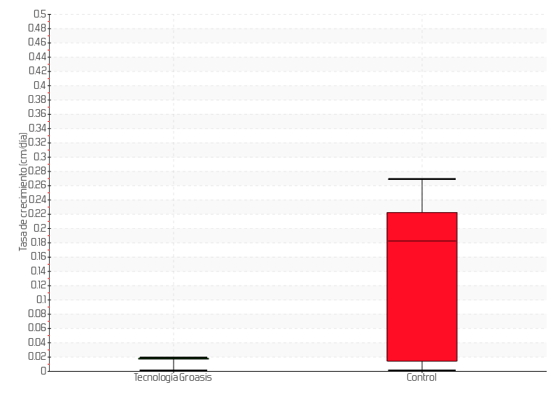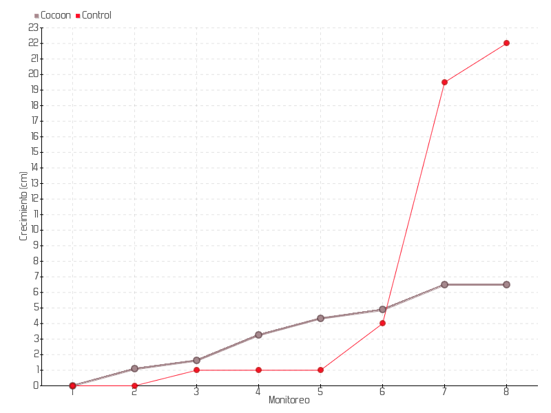 | 7 | 13/06/2018 | 65.50 cm | 1.63 cm | 0.0209 cm/día | 6.50 cm |