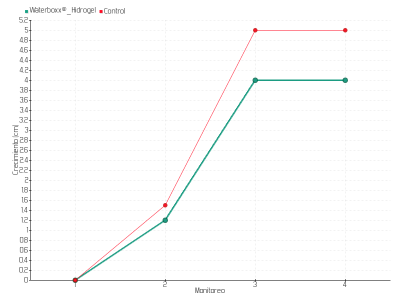 | Monitoreo | Fecha | Altura | Crecimiento | Tasa de crecimiento | Crecimiento total |