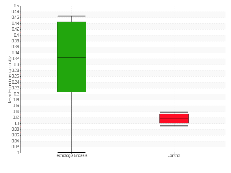 | 5 | 27/12/2017 | 18.00 cm | 8.50 cm | 0.7083 cm/día | 16.00 cm |