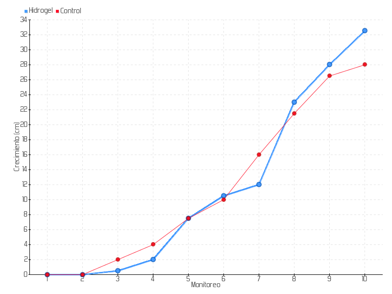 | 10 | 09/02/2018 | 34.00 cm | 4.50 cm | 0.6429 cm/día | 32.50 cm |