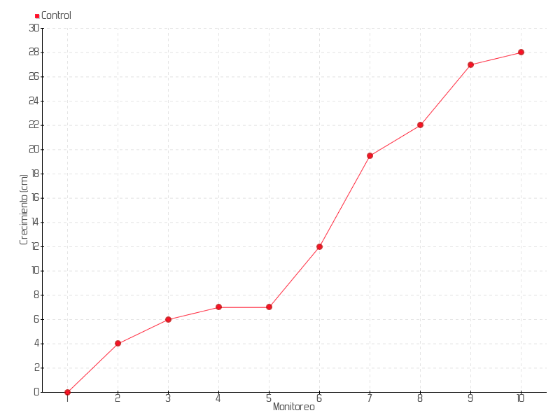 | 6 | 10/01/2018 | 13.00 cm | 5.00 cm | 0.3571 cm/día | 12.00 cm |