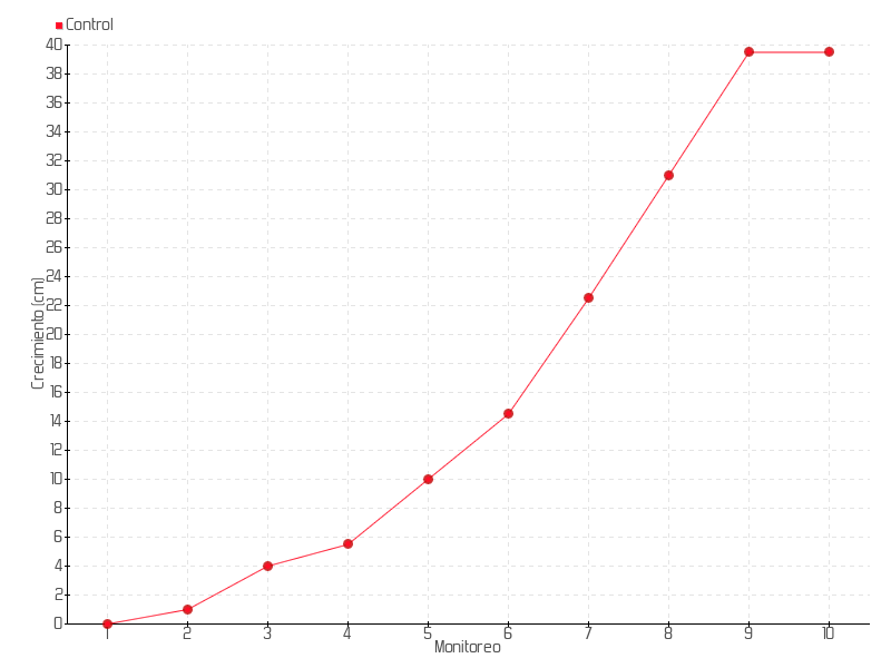 | 6 | 10/01/2018 | 15.50 cm | 4.50 cm | 0.3214 cm/día | 14.50 cm |