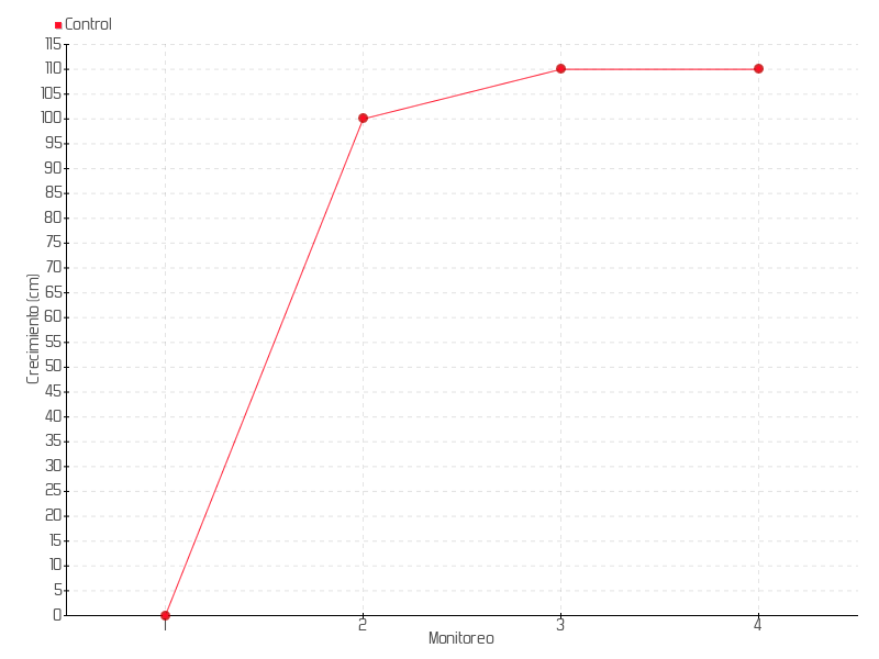 | Monitoreo | Fecha | Altura | Crecimiento | Tasa de crecimiento | Crecimiento total |