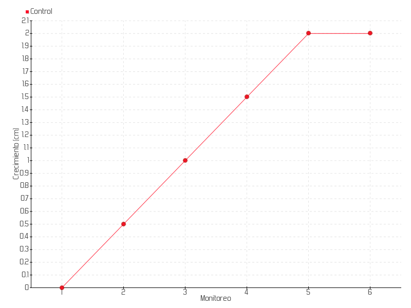 | Monitoreo | Fecha | Altura | Crecimiento | Tasa de crecimiento | Crecimiento total |