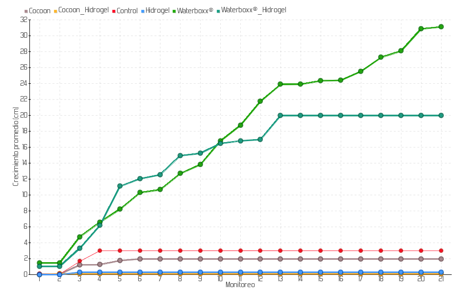 Crecimiento promedio de las plantas sembradas de la especie Maytenus octogona en la isla Baltra: