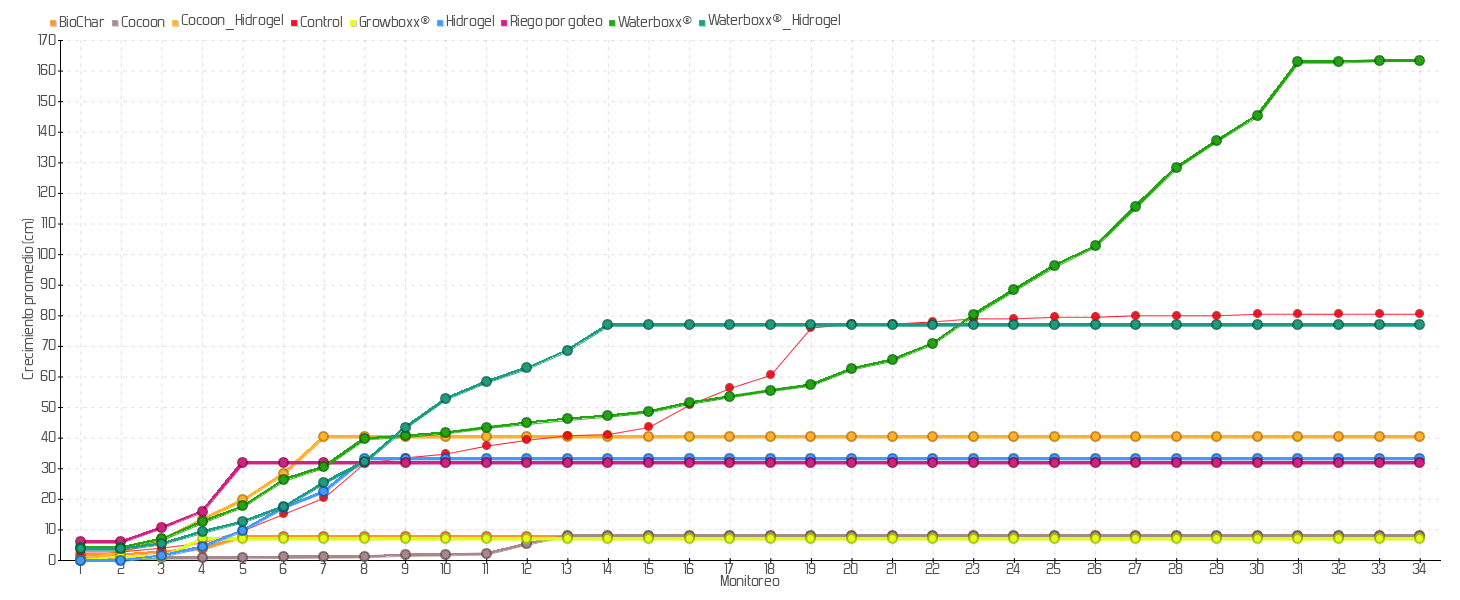 Crecimiento promedio de las plantas sembradas de la especie Opuntia echios var. echios en la isla Baltra: