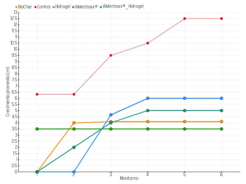 Crecimiento promedio de las plantas sembradas de la especie Erythrina velutina en la isla Santa Cruz: