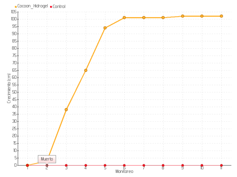 Monitoreo | Fecha | Altura | Crecimiento | Tasa de crecimiento | Crecimiento total |
