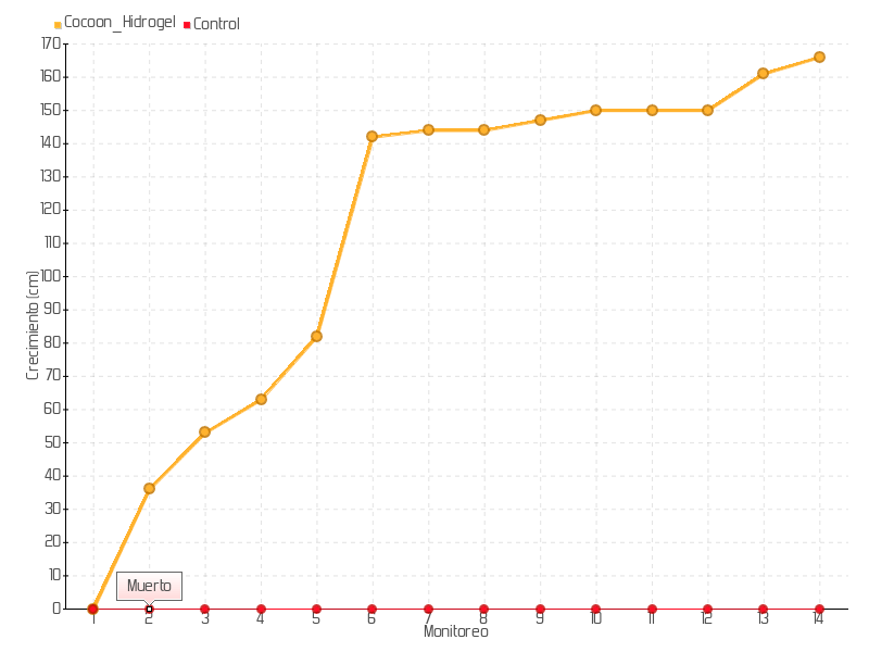 | Monitoreo | Fecha | Altura | Crecimiento | Tasa de crecimiento | Crecimiento total |