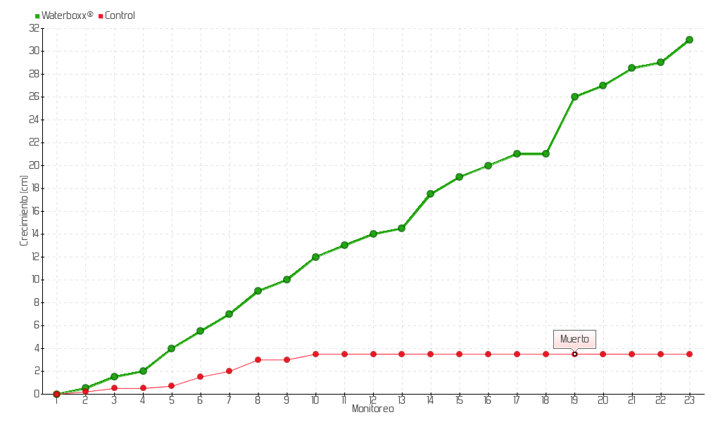 | 10 | 07/10/2013 | 21.00 cm | 2.00 cm | 0.2857 cm/día | 12.00 cm |