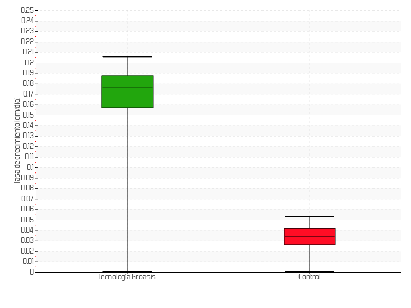 | 4 | 26/08/2013 | 11.00 cm | 0.50 cm | 0.0714 cm/día | 2.00 cm |