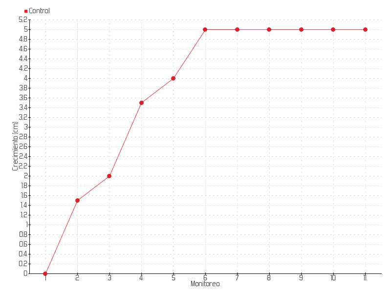 | 5 | 25/03/2021 | 18.00 cm | 0.50 cm | 0.0088 cm/día | 4.00 cm |