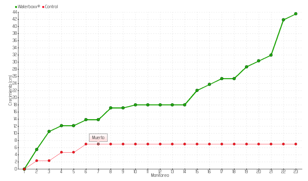 23 | 26/02/2016 | 78.00 cm | 1.65 cm | 0.0359 cm/día | 43.50 cm |
