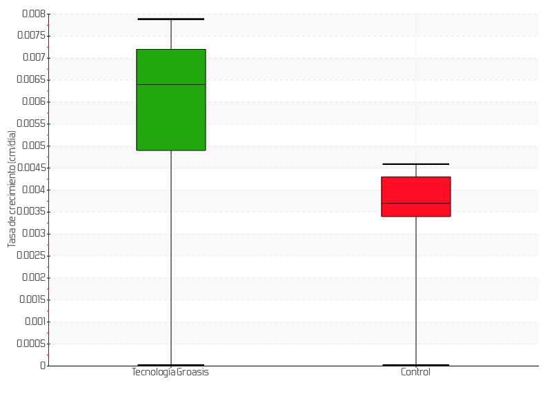 | 5 | 25/03/2021 | 17.00 cm | 1.50 cm | 0.0263 cm/día | 5.00 cm |