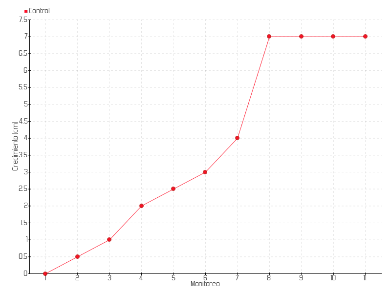 | 4 | 06/05/2020 | 17.00 cm | 1.00 cm | 0.0116 cm/día | 2.00 cm |