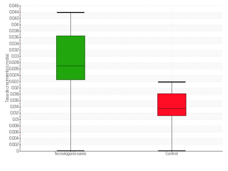 6 | 01/08/2014 | 11.00 cm | 0.67 cm | 0.0372 cm/día | 2.00 cm |