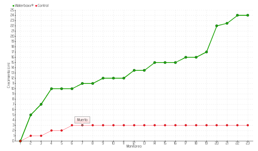 20 | 15/06/2015 | 42.00 cm | 5.00 cm | 0.1282 cm/día | 22.00 cm |