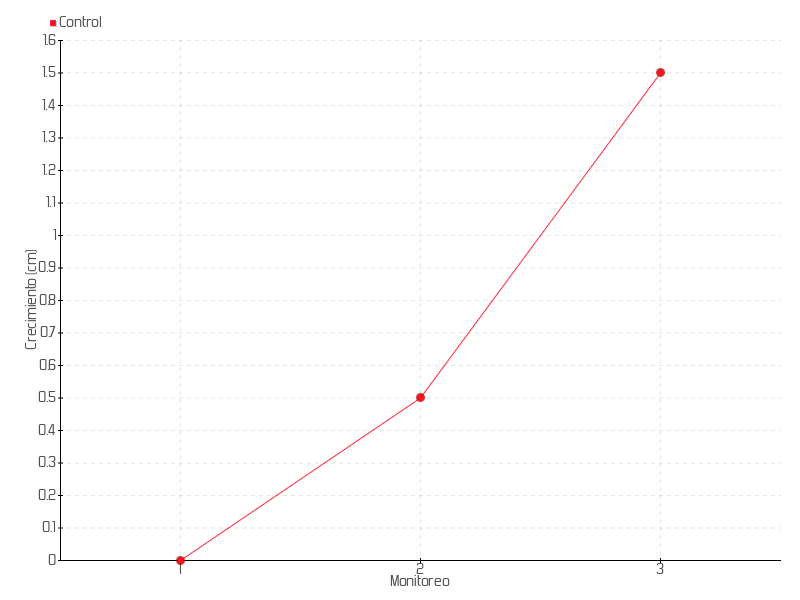 3 | 25/08/2014 | 8.00 cm | 1.00 cm | 0.0417 cm/día | 1.50 cm |