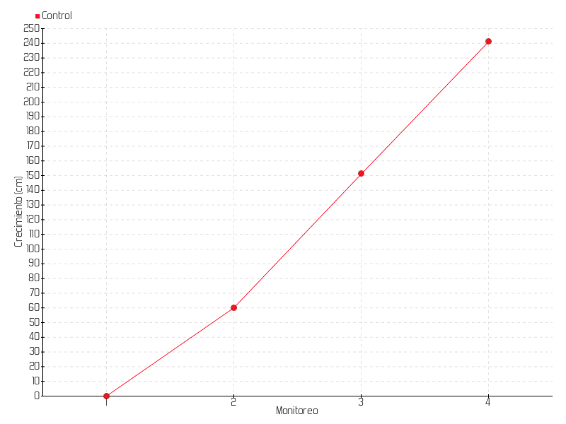 | Monitoreo | Fecha | Altura | Crecimiento | Tasa de crecimiento | Crecimiento total |