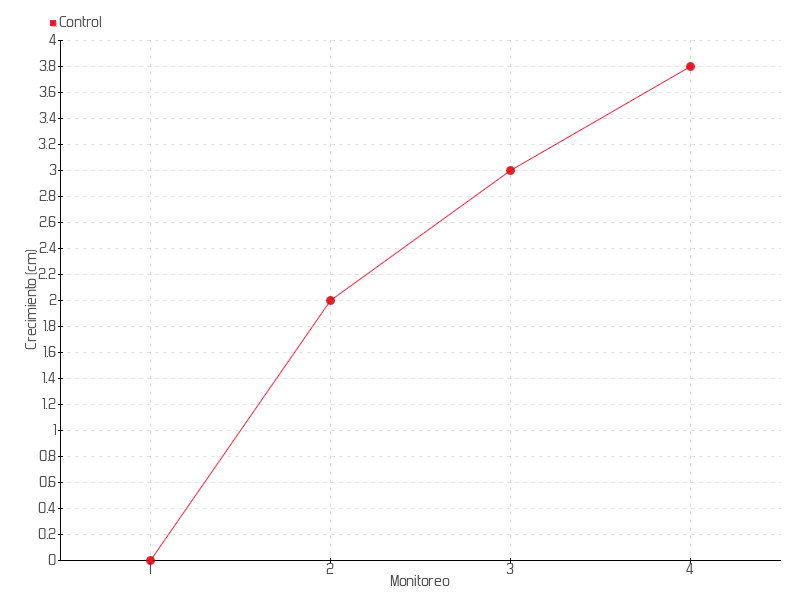| Monitoreo | Fecha | Altura | Crecimiento | Tasa de crecimiento | Crecimiento total |