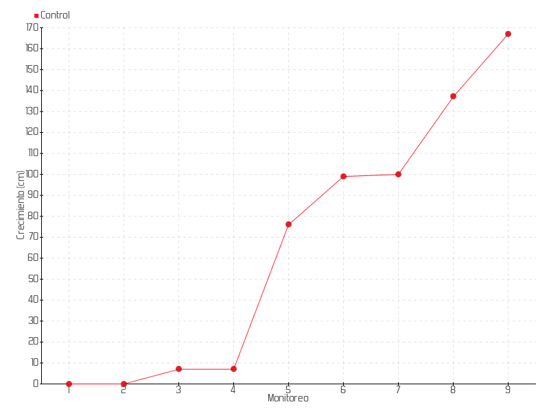 8 | 05/10/2023 | 162.00 cm | 37.00 cm | 0.1396 cm/día | 137.00 cm |