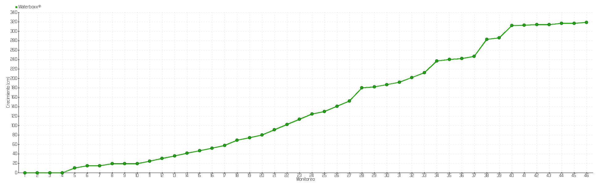 46 | 08/04/2025 | 327.00 cm | 2.00 cm | 0.0069 cm/día | 319.00 cm |