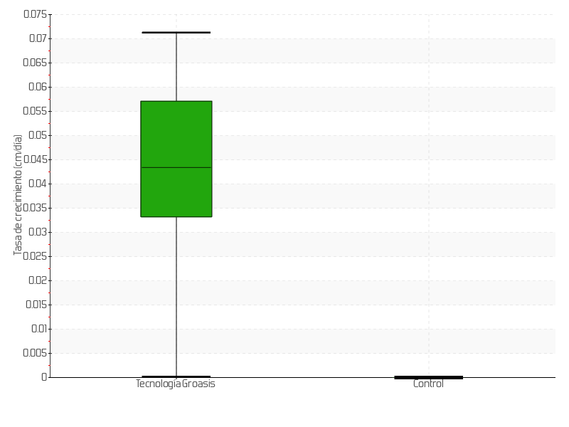 8 | 12/12/2014 | 42.25 cm | 2.25 cm | 0.0978 cm/día | 5.25 cm |