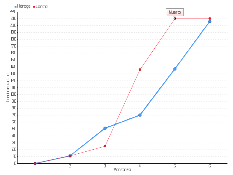 6 | 14/03/2025 | 222.00 cm | 69.00 cm | 0.1358 cm/día | 206.00 cm |