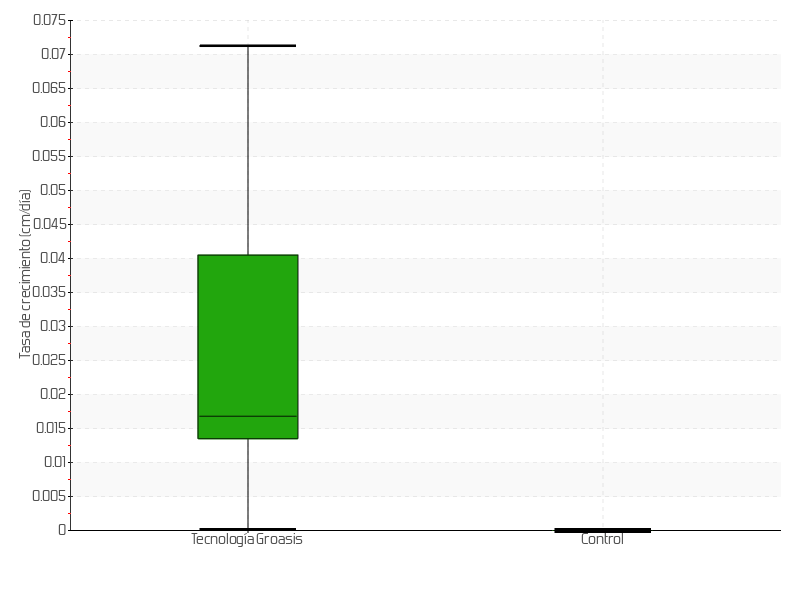 6 | 22/10/2014 | 9.50 cm | 0.50 cm | 0.0357 cm/día | 4.50 cm |